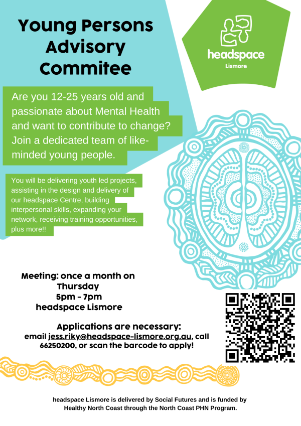 headspace Lismore is operated by Social Futures. All headspace services are funded by the Australian Government Department of Health and Aged Care. Administration of funding is carried out by the headspace centre’s local Primary Health Network, in this case, Healthy North Coast.