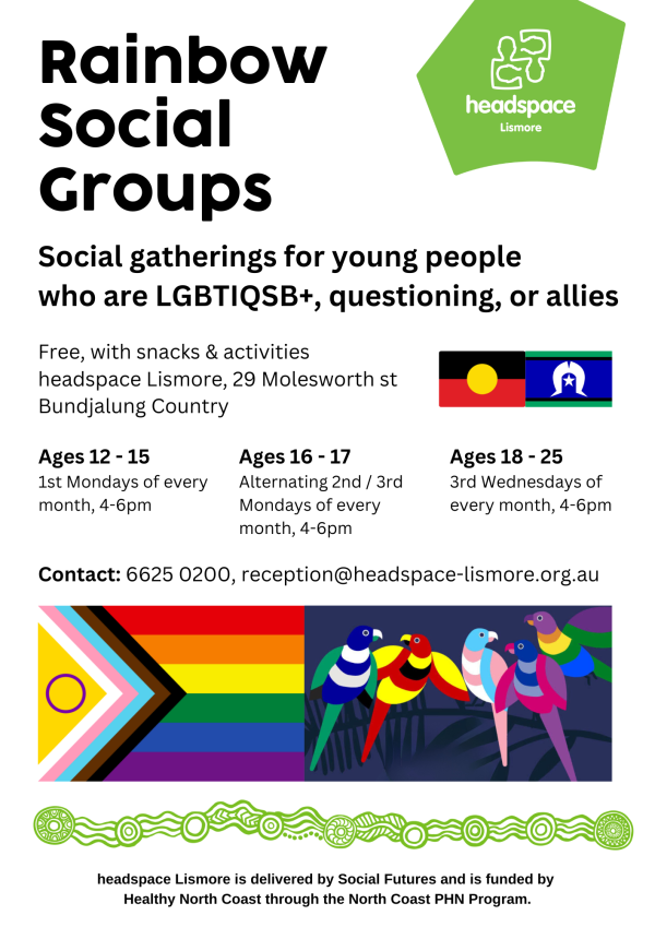 We have some changes for our LGBTIQSB+ social groups at headspace Lismore!