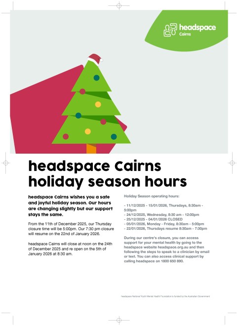 As we wrap up another big year, we want to say a huge thank you to everyone who has been part of the headspace Cairns community in 2025. Your energy, support, and willingness to show up for yourselves and each other has made this an amazing year, and we can’t wait to see you again in 2026.