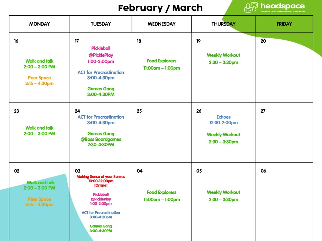 headspace Recovery Groups Term 1Timetable 2026