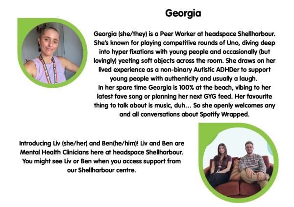 Here at headspace Shellharbour & headspace Kiama, we wanted to share who our amazing staff are!